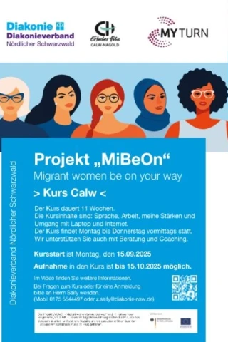 Weitere Informationen zum Projekt erhalten Sie auch unter: diakonie-nordschwarzwald.de/angebote-hilfen/projekte/esf-projekt-mibeon-migrant-women-be-on-your-way